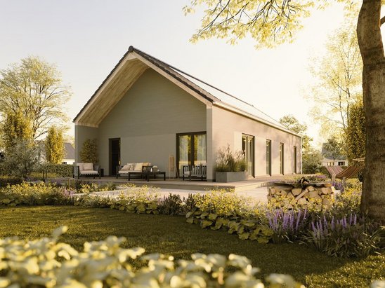 Gemütlich und energiesparend wohnen – der Bungalow 78 bietet clever geplanten Wohnraum auf einer Ebene mit Urlaubsflair. Vielseitig gestaltbar, hell, barrierefrei und nah an der Natur.