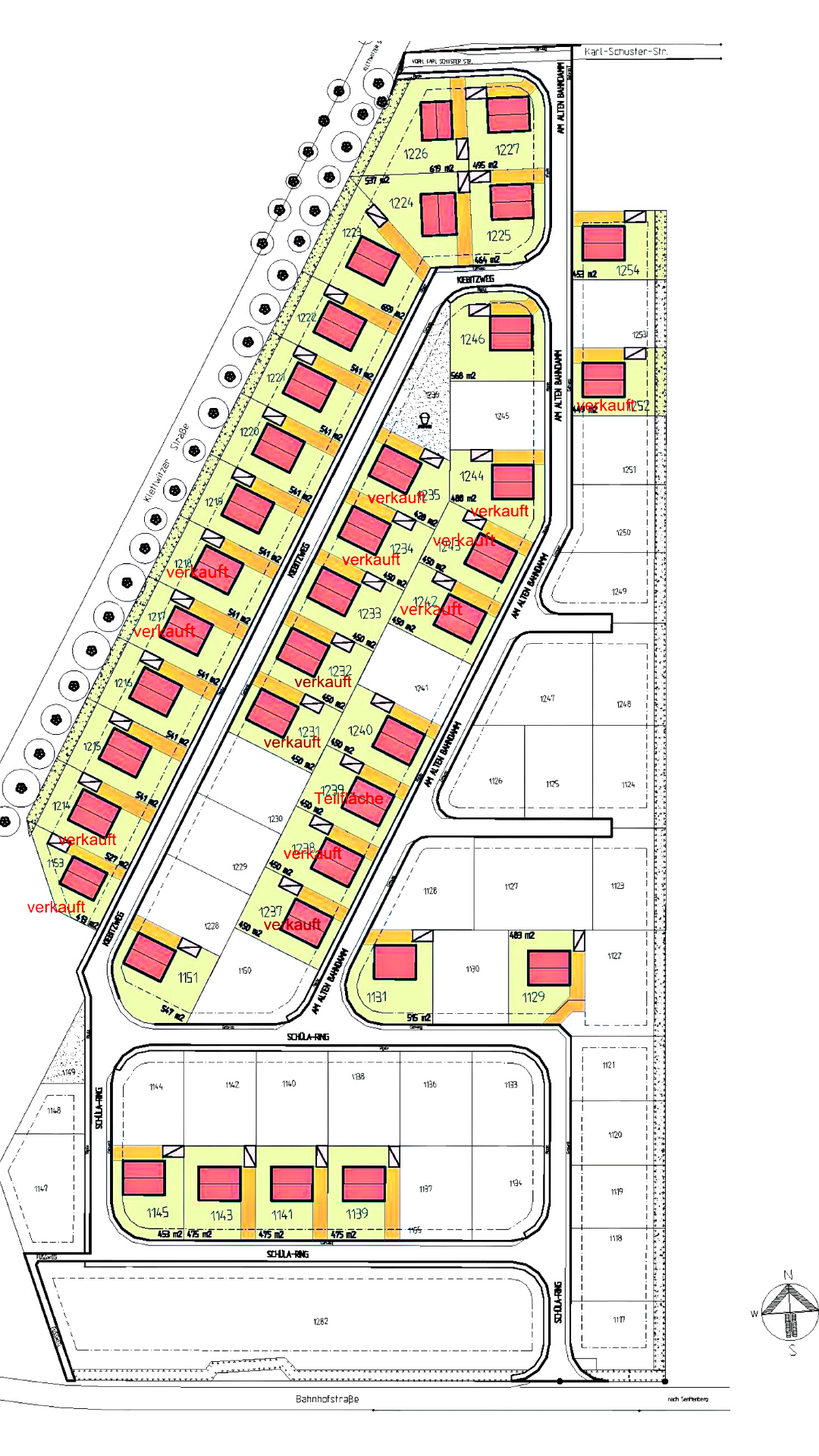 - Es stehen mehrere Grundstücke in Größen zwischen 410 und 660 m² zum Verkauf und der Erwerb von zwei oder mehreren nebeneinander liegenden Grundstücken ist aktuell noch möglich.